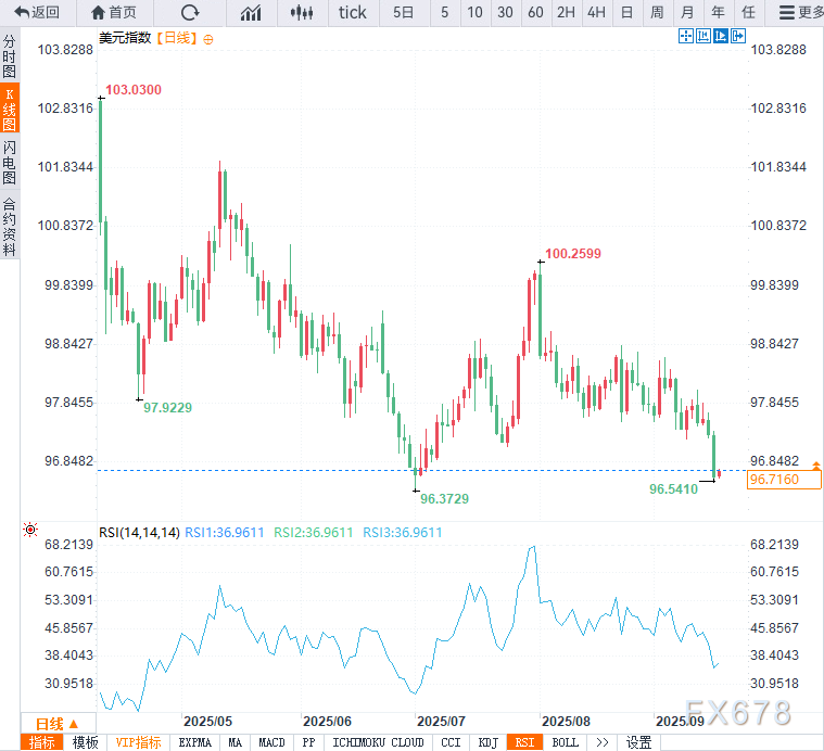 (美元指数日线图,来源:易汇通)北京时间15:13,美元指数现报96.72。