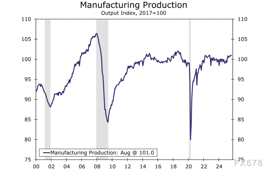 尽管普遍预期工业产出将连续第二个月下滑,但8月份仍增长了0.1%。单看这一数据似乎令人鼓舞,然而,结合7月份数据从原本仅下滑0.1%被大幅下修至更令人不安的0.4%这一背景来看,这份最新报告显示总产出已低于市场原先对7月份水平的预估。